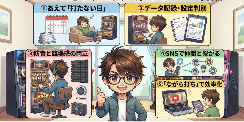 ただし、家スロを導入したからといって完全にホール通いをやめる必要はありません。むしろ、「普段は家スロで楽しみ、月1〜2回だけホールに行く」というスタイルが最もコスパが良く、満足度も高い組み合わせです。